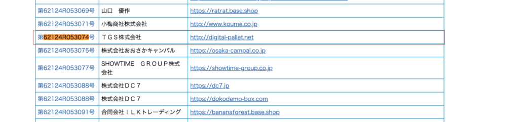 また、古物商許可番号:大阪府公安委員会 62124R053074号を大阪府公安委員会のWEBサイトで調べたところ、