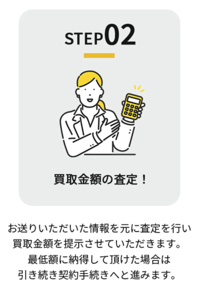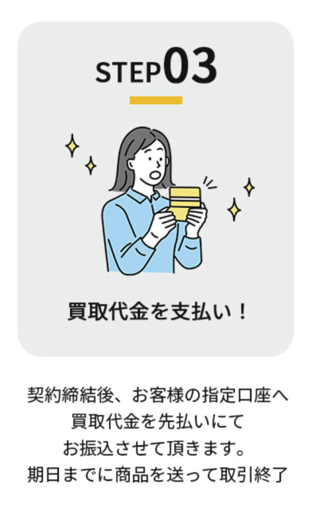 すでに先払い買取業者を利用されている方はご存知かと思いますが、同社の利用の流れは次のような流れになります。