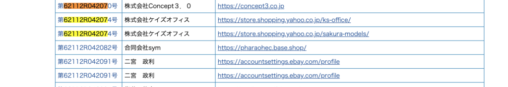 また、古物商許可証番号:第62112R042078号を大阪府公安委員会のWEBサイトで調べましたが、「62112R042078」の登録番号を見つけることはできませんでした。