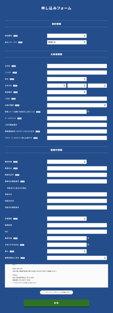 最初のステップは、サービスサイトのフォームに情報を入力して、申し込みを行います。