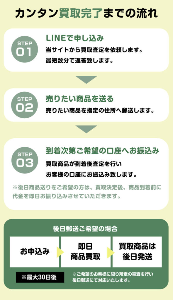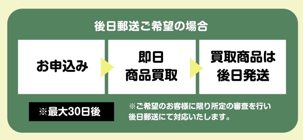 すでに先払い買取業者を利用されている方はご存知かと思いますが、同社の利用の流れは次のような流れになります。
