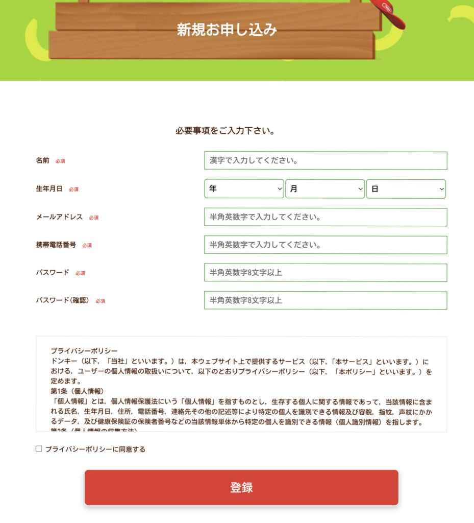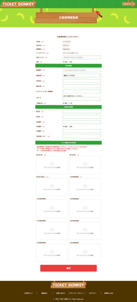 確認のメールを開くと、個人情報を入力する画面に遷移します。