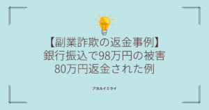 銀行振込で60万円の被害50%の30万円の返金に成功※消費者センターで失敗した事例